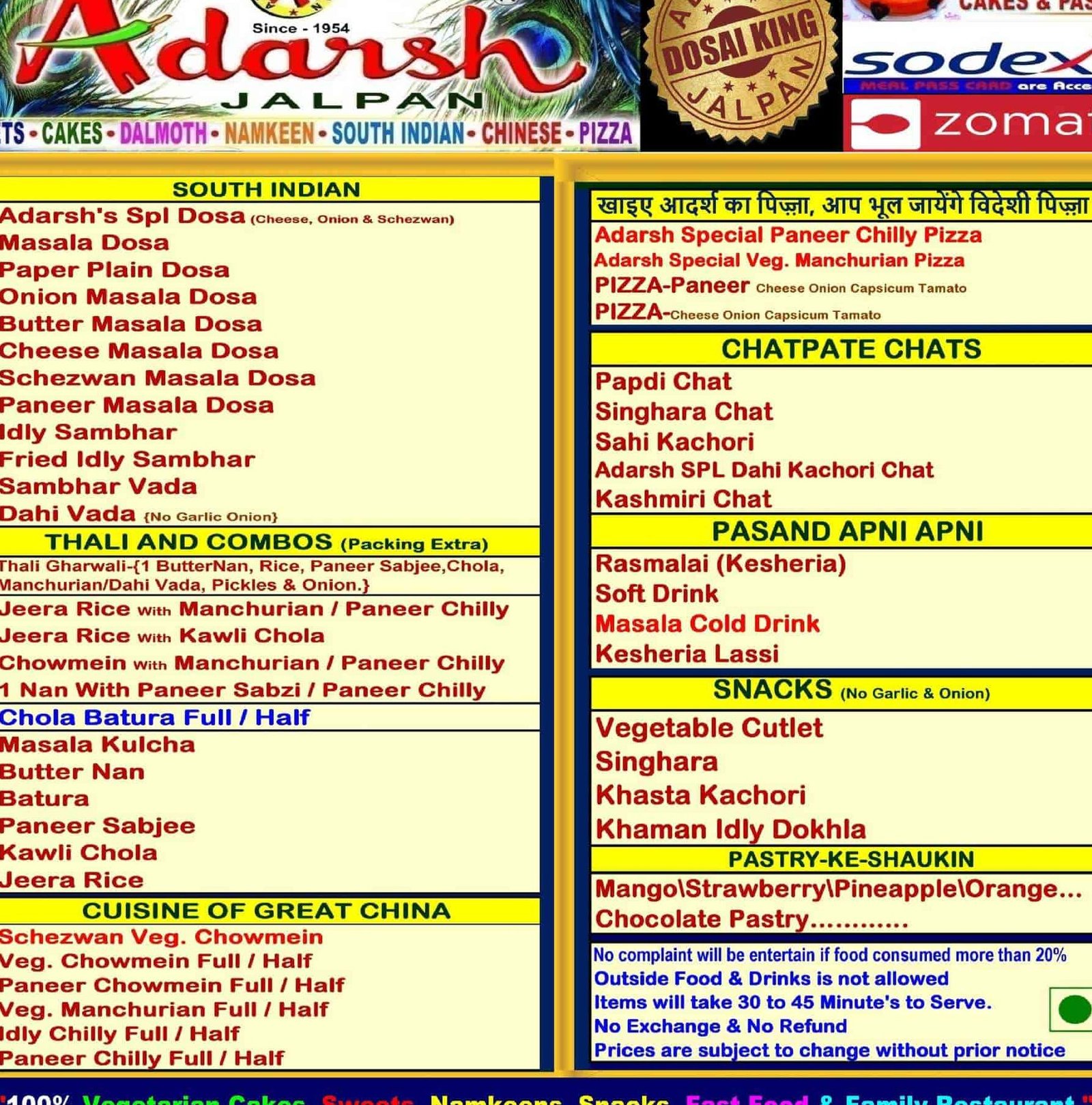 Since Adarsh Jalpan Grih does not appear to have an online website, what is the best way to inquire about their current operating hours or daily specials?