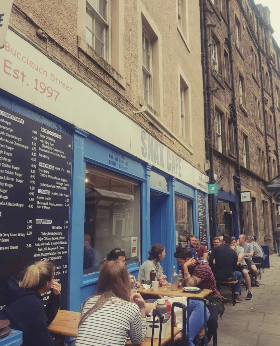 I’m planning a dinner run after work. What’s the typical dining atmosphere like at Snax Café, and are they strictly an evening place, or do they handle the lunchtime rush well too?