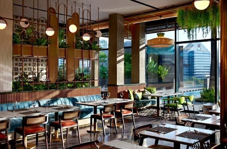 Based on the location, are the food offerings at this restaurant more oriented towards street food favorites or formal, plated dining experiences?
